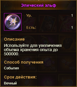 Эпический эльф - способен накопить 500.000 опыта.