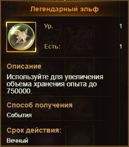 Легендарный эльф - способен накопить 750.000 опыта.