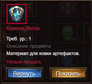 Каждый Артефакт имеет собственные характеристики, которые дают прибавку к основным характеристикам вашего персонажа и не зависят от класса.
