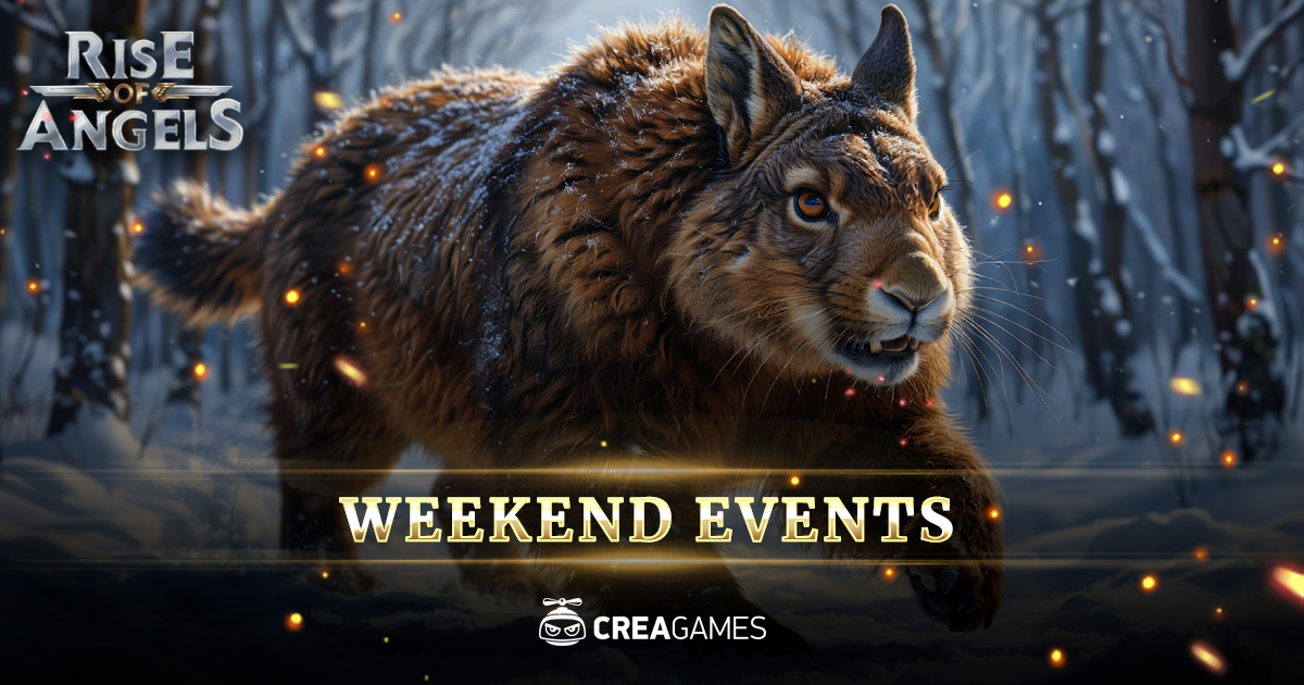 What is the most terrifying creature you can encounter in a winter forest? A bear? A troll? A manticore? Not even close! The fiercest winter predator is the saber-toothed hare. Unlike most forest animals this bloodthirsty cousin of ordinary rabbits spends nine months in hibernation — from late March to mid-November. But once winter arrives, it emerges from its deep hidden burrow and goes on a hunt. A saber-toothed hare can wipe out a pack of wolves, drive off a bear or even destroy a small village. Only the most experienced and well-prepared groups of adventurers stand a chance against it. Fortunately, this savage beast rarely leaves the deepest forest thickets — it prefers to seek worthy opponents in places rich with magic rather than prey on the weak. And now, let’s talk about the upcoming Weekend Events in Rise of Angels!