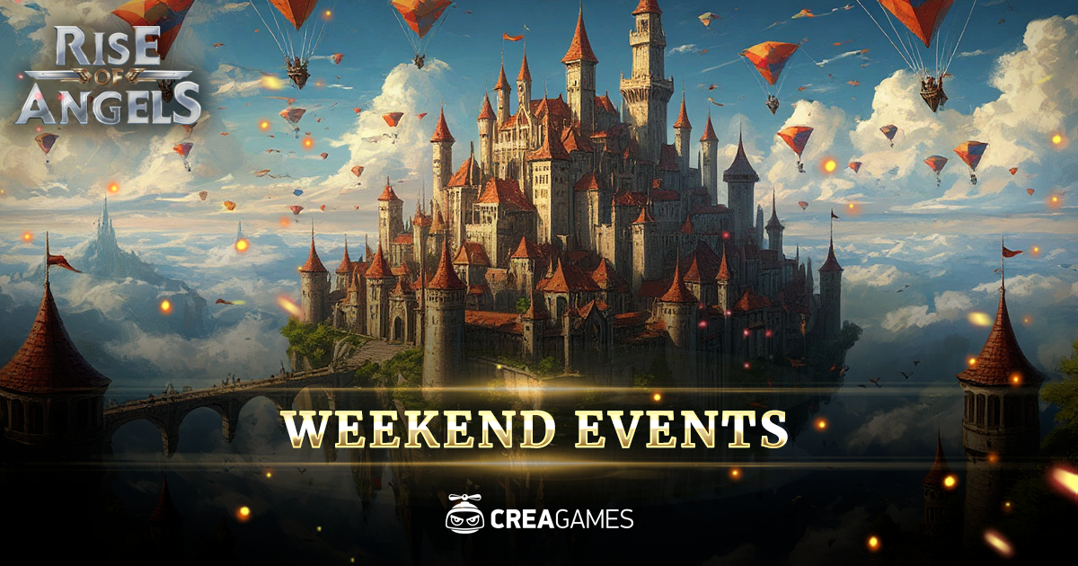 Throughout the year, the Floating City drifts across the continent, occasionally stopping at different locations. One of the most popular summer destinations is the Sky Harbor of the Grey Mountains. The traditional Aeronauts’ Festival takes place here — a colorful event where all kinds of homemade flying machines take to the skies, aiming to stay airborne as long as possible. Most participants circle the anchored Floating City a few times and return to the harbor. But the most dedicated flyers compete for the grand prize, spending days, sometimes even weeks, in the air. And that is for a good reason: the creators of the best machine receive generous rewards and research grants for their further inventions. After all, progress never slows down! But for now, let’s talk about the Weekend Events in Rise of Angels