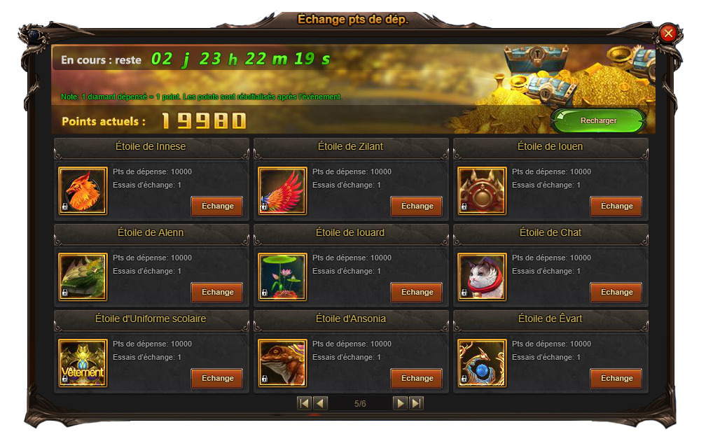 Échange des points  - excellent avantage d'achetez de styles superbes ! Collectez des points et acquérez de nouveaux objets.