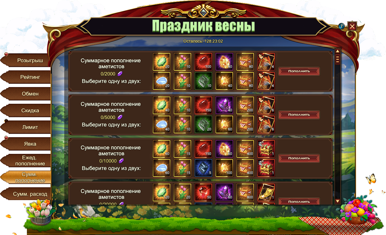 Праздник весны - Суммарное пополнение