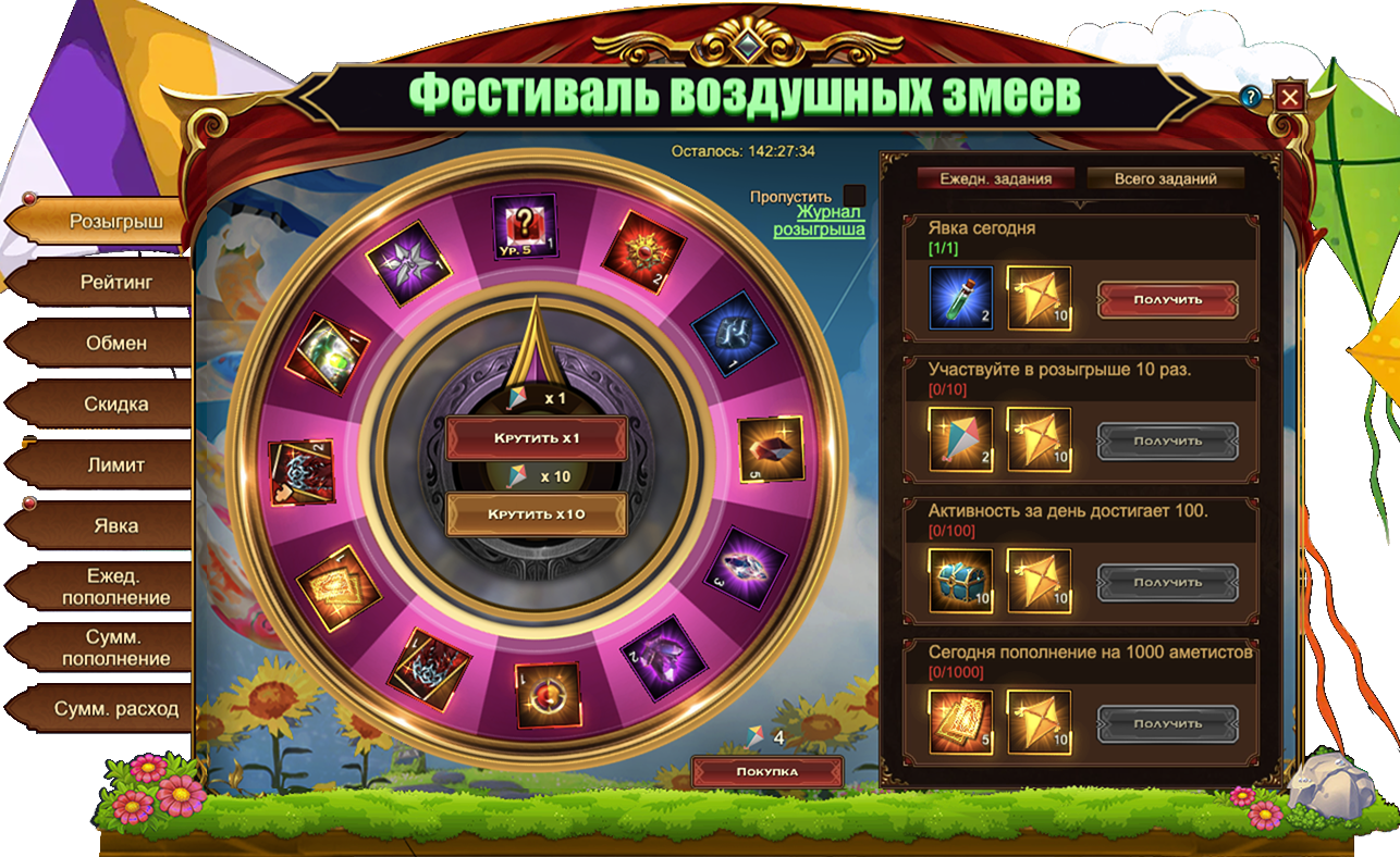 За участие в розыгрыше определенное количество раз вы также можете получить: Камень усиления герояЗолотой воздушный змей и Камень повышения героя.