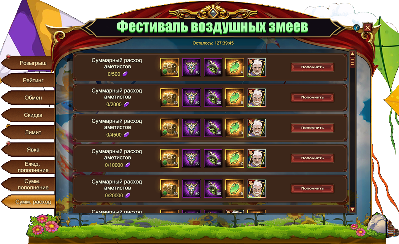 Фестиваль воздушных змеев - Суммарное пополнение