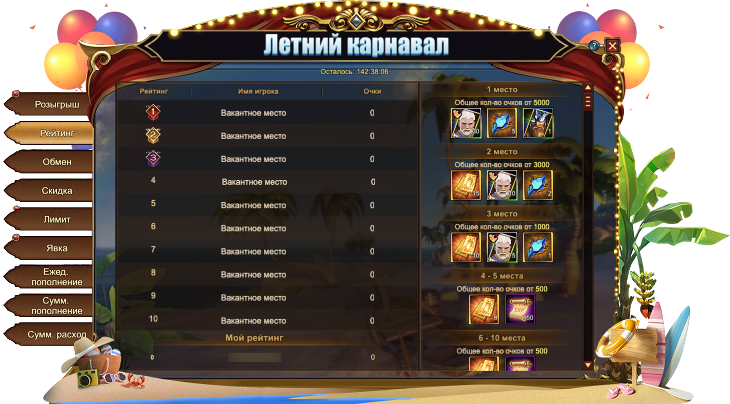 За участие в Розыгрыше вы получаете специальные очки, определяющие ваше положение в Рейтинге фестиваля. В зависимости от положения в рейтинге можно получить: Свитки славыФиолетовые свитки опыта, Сущность артефакта, [Фрагмент карты] Тюр и даже [Карта] Тор!