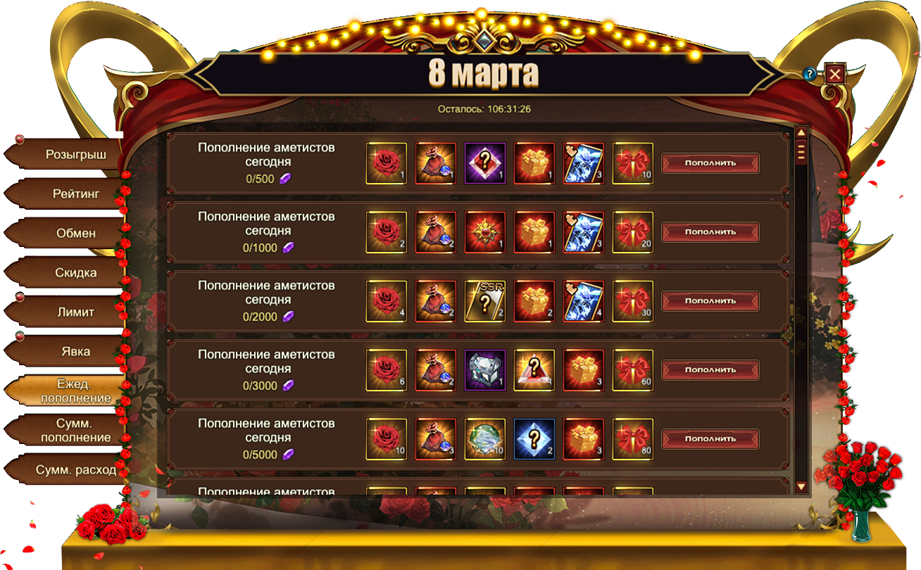 8 Марта - Ежедневное пополнение