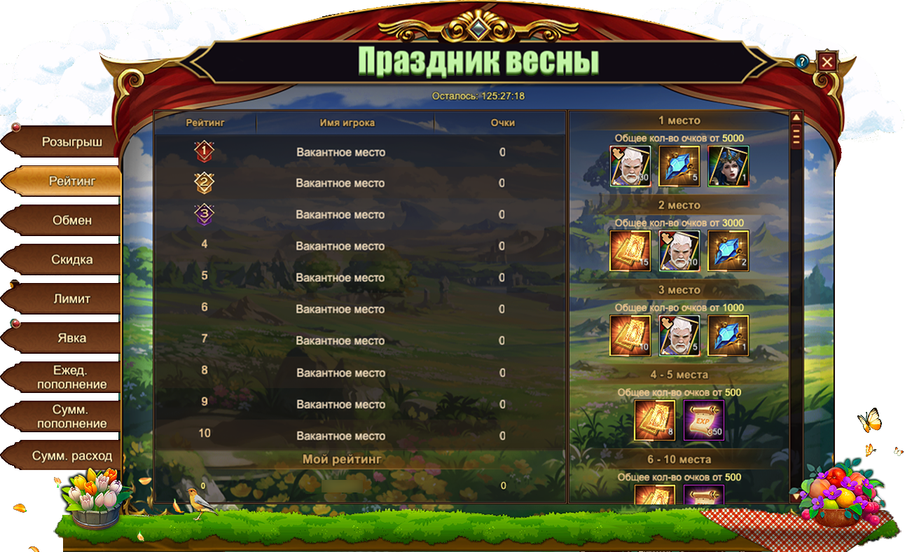 Сегодня18 марта, в Eternal Fury Reborn запущены новые тематические события — Праздник весны, которые продлятся ровно шесть дней до 23 марта включительно. Насладитесь весенним ветерком!