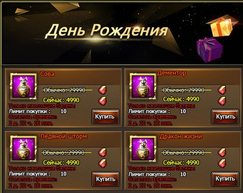 Здравствуйте, элементаль, повелитель огня, вставте куда-нибудь хотя бы на юбилей 10-и летия игры, не плохо было бы в магазин сокровищ за значки наездника. Хоты бы поспособствуйте, может, услышат.❤