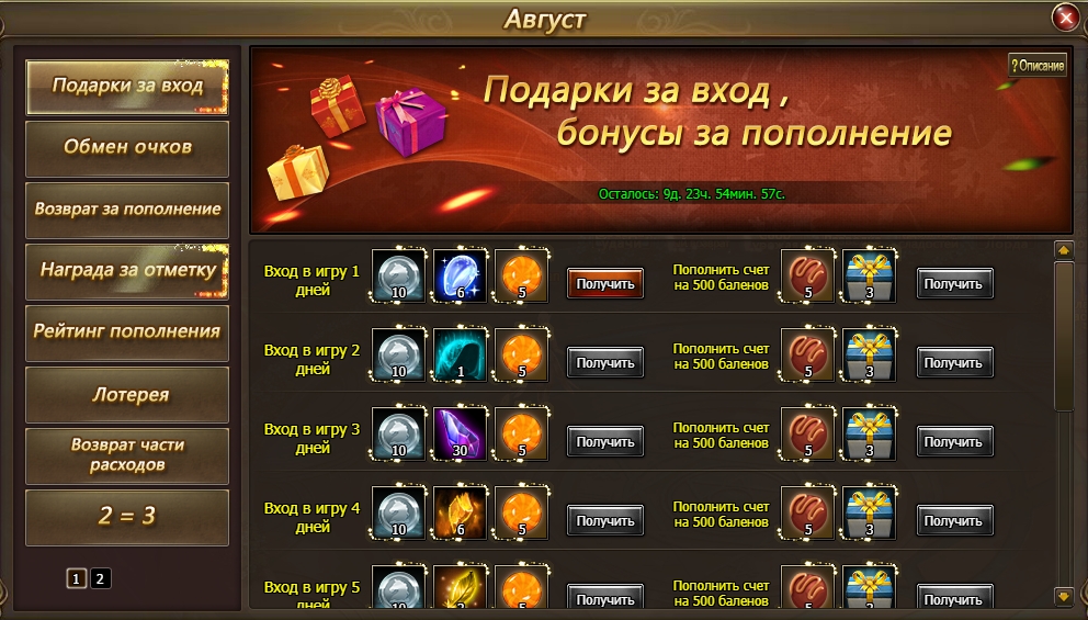 14.    С 21 по 25 августа в Сундуке сокровищ можно получить подарки за пополнение счета от 1000 баленов.