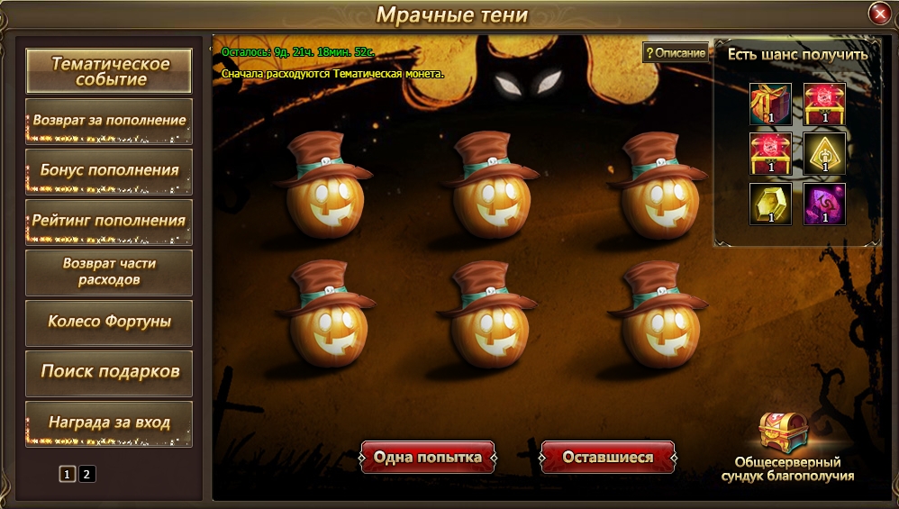 5.    С 23 октября по 1 ноября наступит время для Мрачных теней – большое игровое событие погрузит нас в атмосферу Хэллоуина! Ивент станет еще ярче с Бесконечностью подарков и Темным балом!