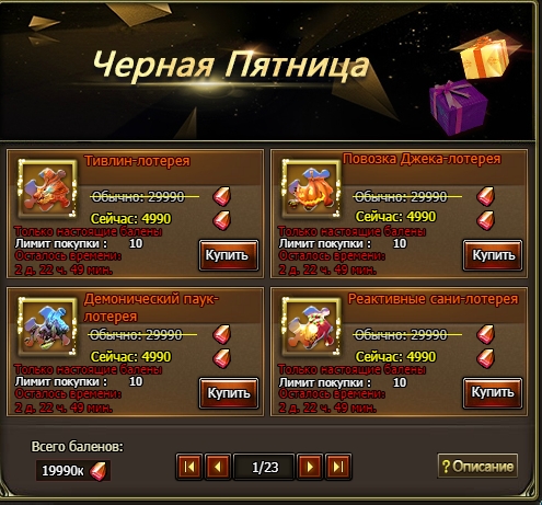 10.    С 22 по 26 ноября открывайте Золотые сундуки за пополнение счета от 1000 баленов.