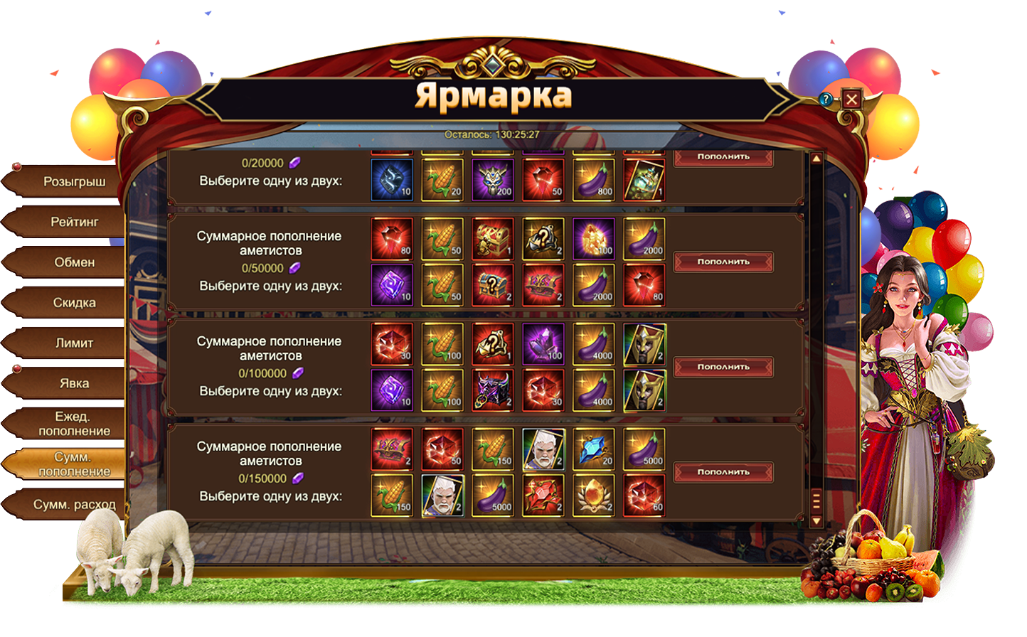 Ярмарка - Суммарное пополнение