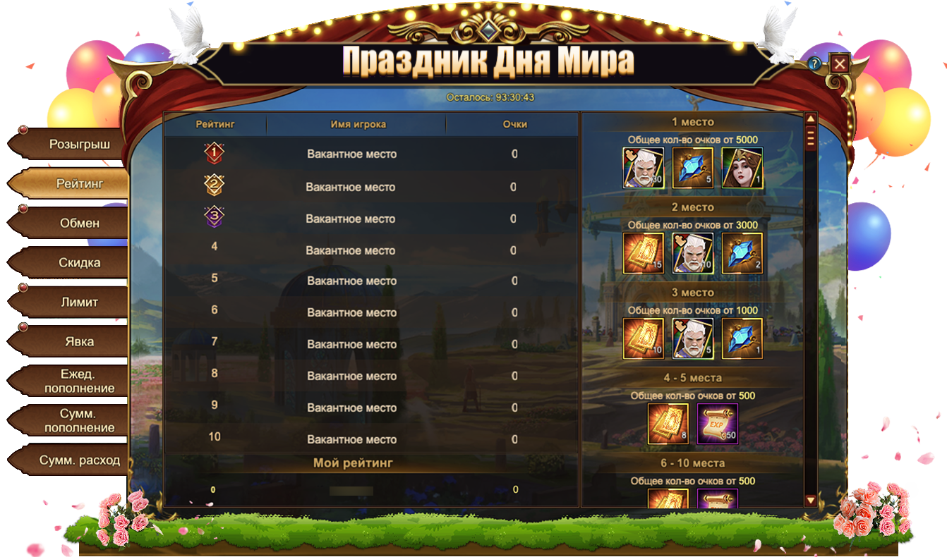 Праздник дня мира - Ежедневное пополнение