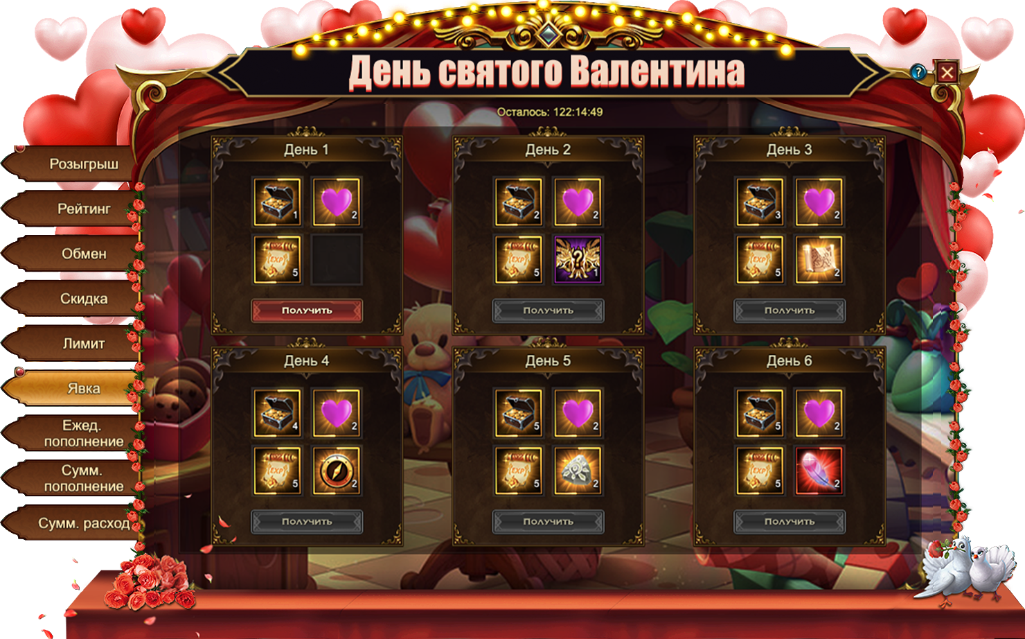 За выполнение ежедневных заданий вы тоже можете получить разнообразные ценности: Малое зелье энергииБукет розСердечкиОсобый сундук материалов или Свиток славы.